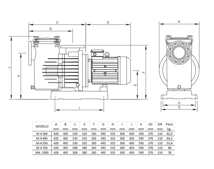 Bomba autoaspirante para piscinas (mayores potencias), de gran caudal con motores a 1450 rpm.