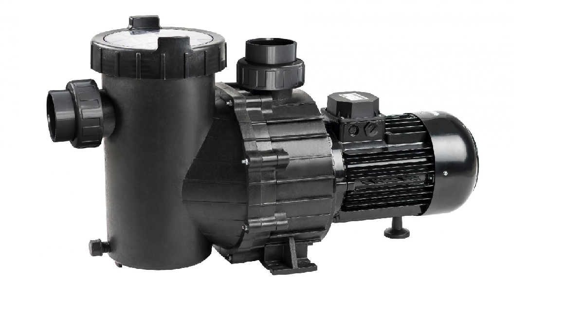 Bomba autoaspirante para piscinas con prefiltro incorporado.