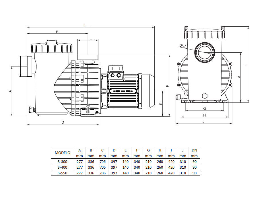 - Cuerpo prefiltro y cuerpo bomba en polipropileno reforzado con fibra de vidrio