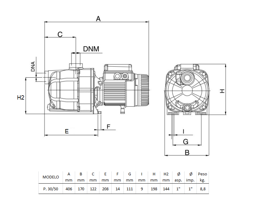 - Cuerpo bomba, impulsores y difusores en tecnopolímero.
