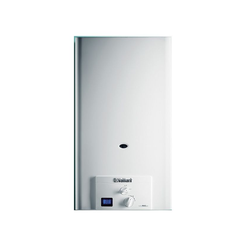 Calentador TurboMag PRO MAG 145/1 Vaillant Es un calentador a gas robusto y fiable que ofrece la máxima seguridad y el confort óptimo a todos los usuarios. Su instalación es sencilla y se realiza con la máxima rapidez gracias a los componentes adicionales suministrados cómo los latiguillos, la llave de corte y accesorios para la conexión de gas. Cámara de combustión estanca. Calentador termostático que mantiene la temperatura seleccionada. Con encendido electrónico en demanda.