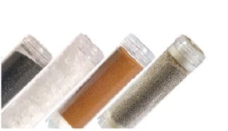 Contenedor transparente, con postfiltro y prefiltro, para rellenarlo con diferentes materiales filtrantes.