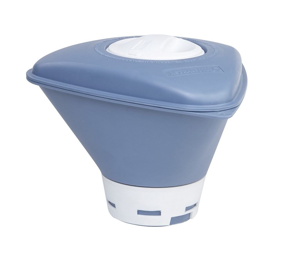 Dosificador Astralpool, gama Shark Dosificador flotante para 5 pastillas 200 g Fabricado en poliestireno de alto impacto, tiene un acabado mate de color gris tiburón. Peso (kg): 6,6