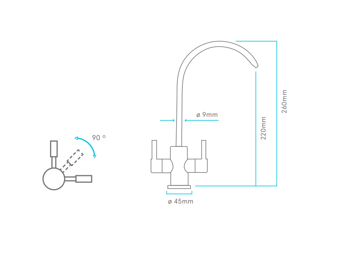 Función principal: Grifo de 2 vías para tratamiento de agua. Boquilla en forma de V para evitar el goteo.