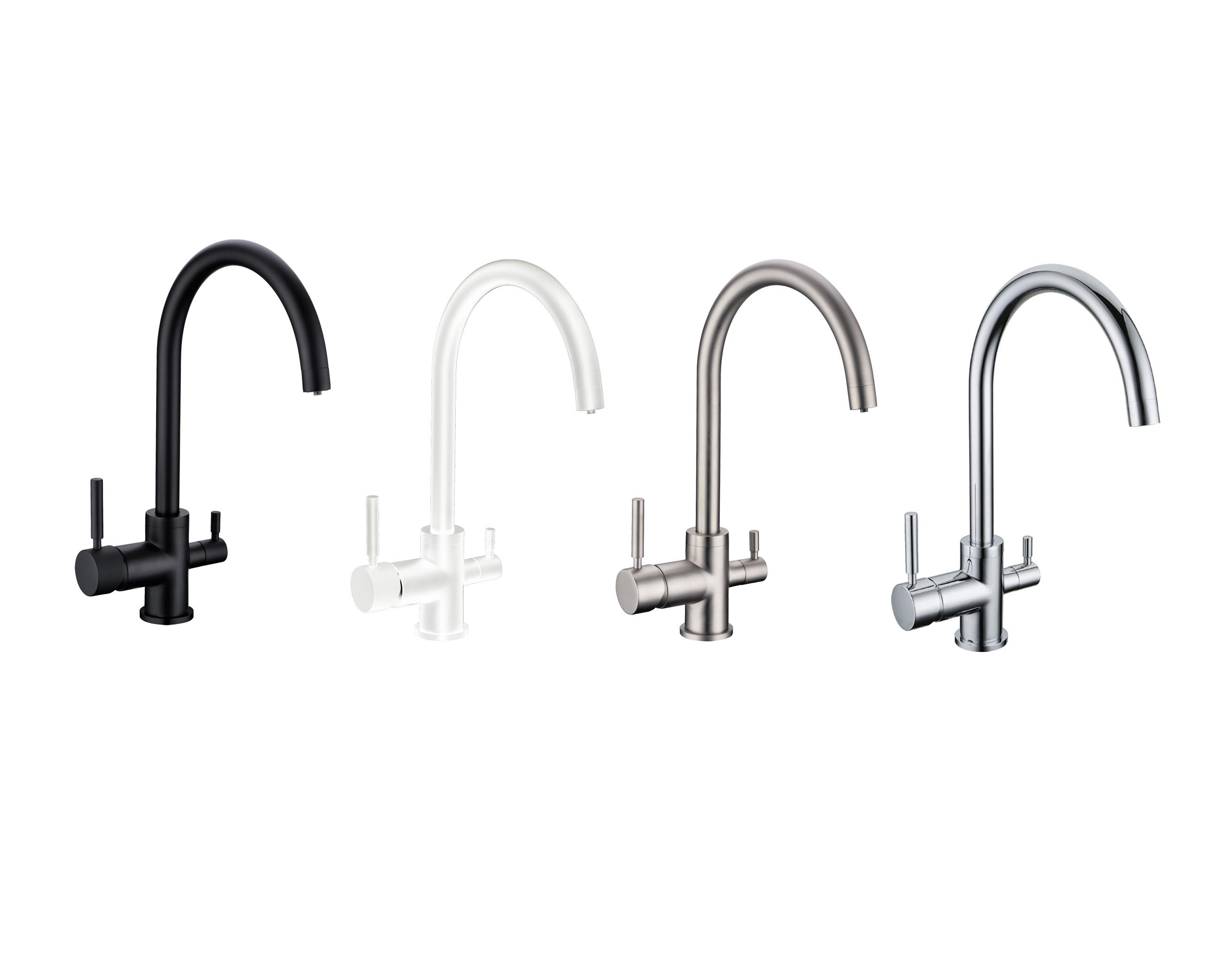 - Grifo Esla White de 3 vías. Acero satinado blanco brillante.