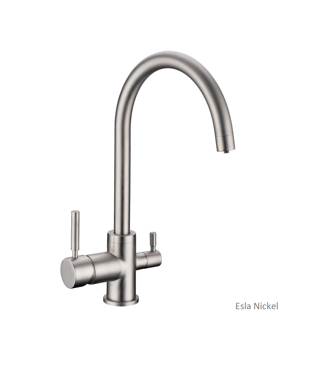 - Grifo Esla Nickel de 3 vías. Acero mate.