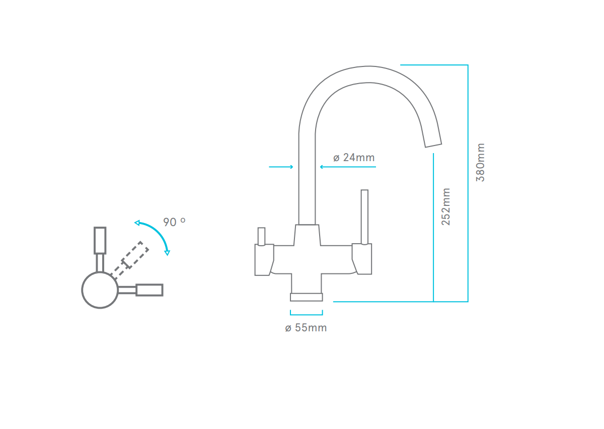 Función principal: Grifo de 4 vías para dispensación de agua de red fría-caliente y agua tratada fría natural de gran caudal.